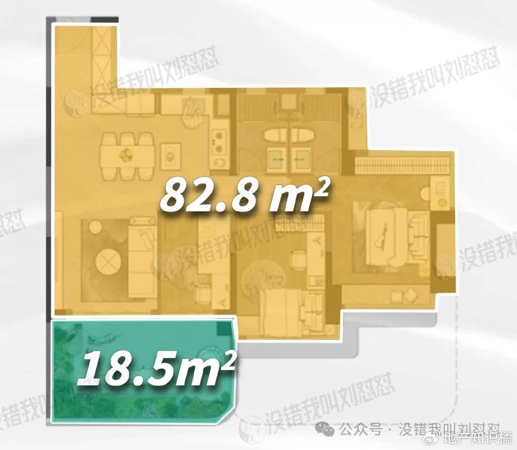 但即便是124%,除去新规力推的“大阳台”,82 方户型的套内大约是82.84m2(不含阳台),真正大大提升得房率的是阳台的面积: