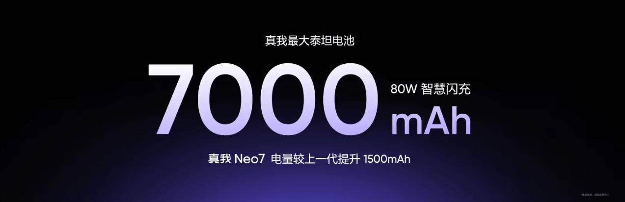 续航方面,真我 Neo7 手机联合宁德新能源首发 7000mAh 容量泰坦电池,支持 80W 智慧闪充(1800 次循环≥80%);新机的电池能量密度 800Wh / L,内置高性能电解液、采用折叠电路板设计 + 高透极片工艺。真我 Neo7 整机的机身厚度约 8.56mm,对比上代搭载 5500mAh 电池的真我 GT Neo6 厚度(8.65mm)有所减少,同时支持反向充电。