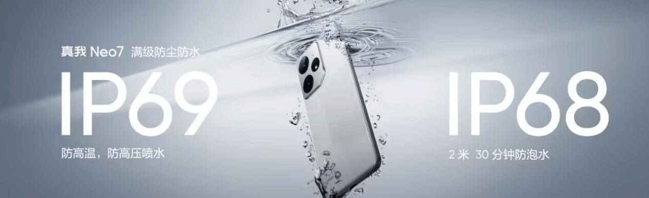 日常使用时,真我 Neo7 搭载 IP69+IP68 满级防水,宣称“防热水、防泡水、防高压冲水”;首发铠装防摔架构,强化金属结构;配备旗舰同款晶铠玻璃,号称“抗摔能力提升 160%,抗刮伤提升 100%”。该机首销赠四年电池保,4 年内电池容量低于 80%,即可免费换新一次。