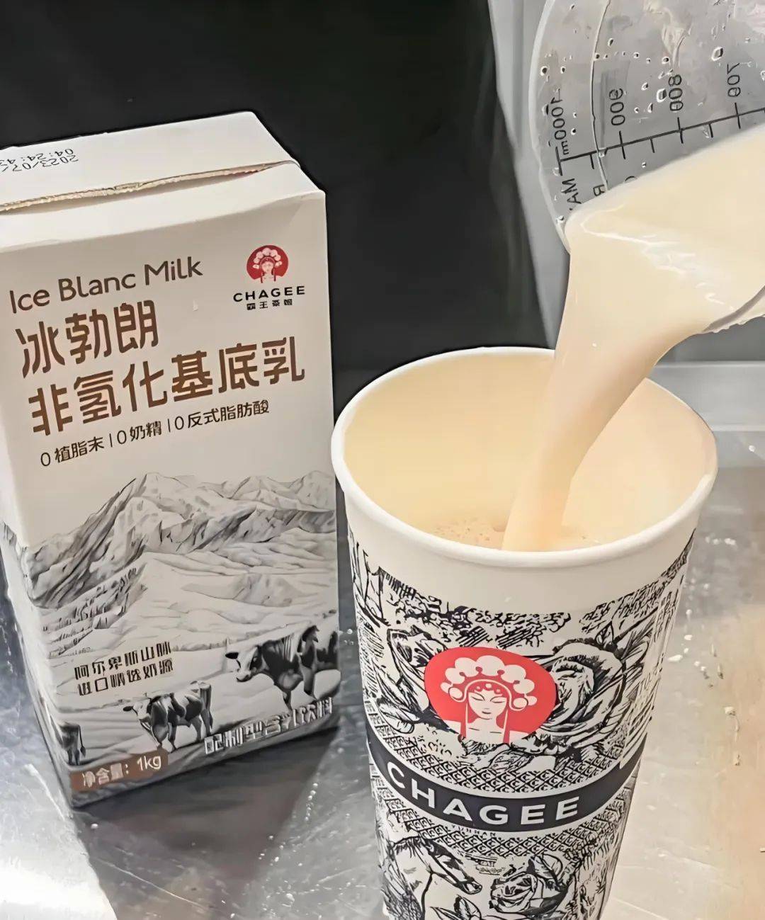 霸王茶姬宣称在其原叶鲜奶茶系列都是0反式脂肪酸,主要成分是原叶茶汤、优质牛乳和冰勃朗非氢化基底乳,其中的冰勃朗是耗费一年多时间研制的新事物,为的是调和奶与茶,并非为了降低成本而做的优质牛乳平替。