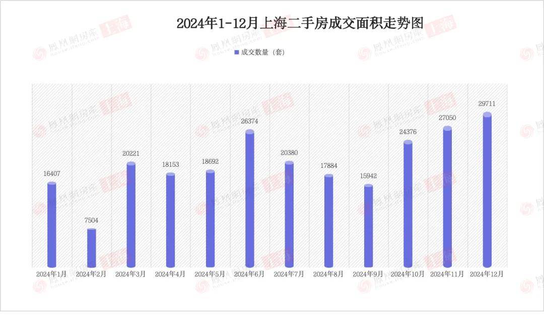 据上海网上房地产发布的数据,2024年12月,上海二手房成交量达到2.97万套,创下近47个月以来的单月最高纪录。