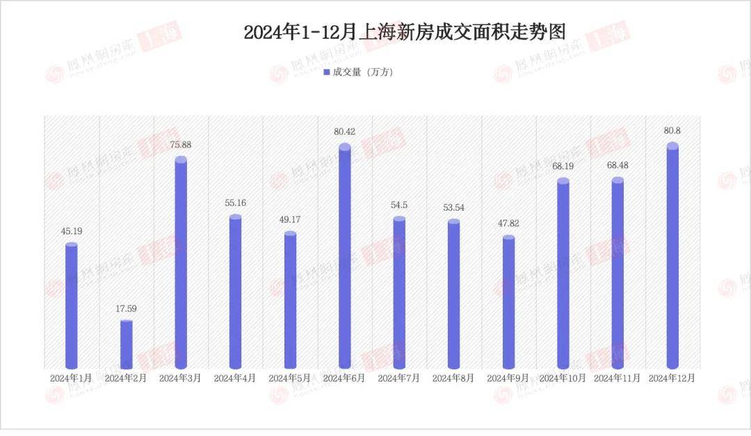 尤其是12月,楼市延续此前热度,成交进一步向上攀升,据佑威房地产研究中心监控的数据显示,当月上海新建商品住宅成交面积80.8万平方米,环比增加17.99%,同比增加3.89%。这一数据也是全年的最高点。