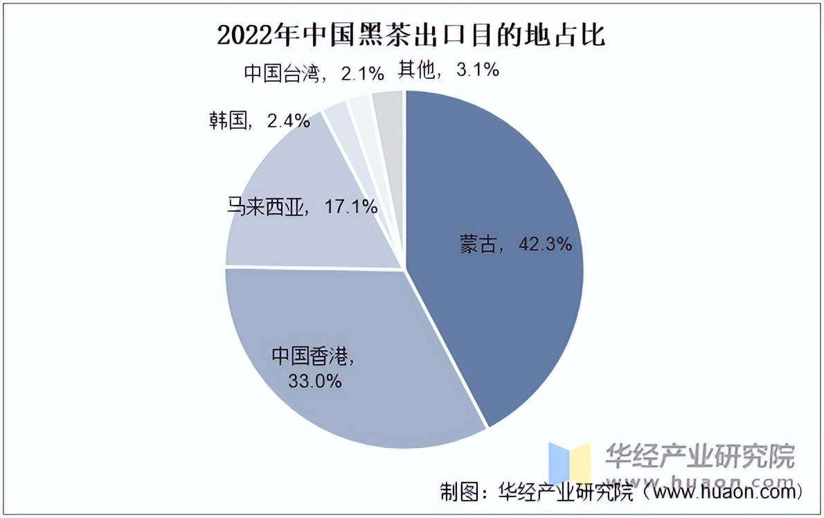 就我国黑茶出口目的地而言,我国黑茶出口仍主要以周边国家地区为主,数据显示,2022年我国黑茶出口前三国家地区分别为蒙古、中国香港和马来西亚,出口量分别为148.37吨、115.61吨和600吨,分别占比国内黑茶出口的42.3%、33%和17.1%。