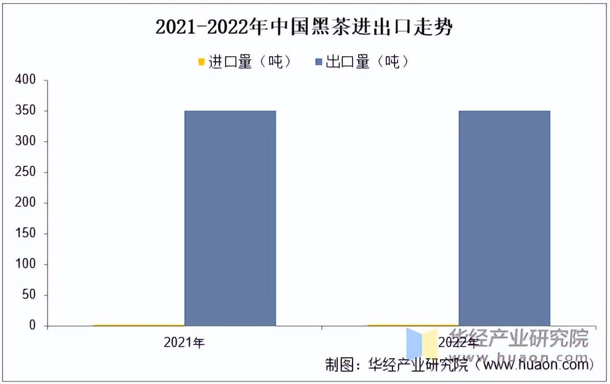 黑茶进出口来看,我国是全球传统茶叶生产大国,黑茶进出口主要以出口为主,进口规模极少,海关总署数据显示,目前国内黑茶进口量在1吨左右,每年黑茶出口量在300吨左右,具体而言,2021和2022年我国黑茶进口量分别为0.66吨和1.46吨,出口量分别为350.14吨和350.78吨。