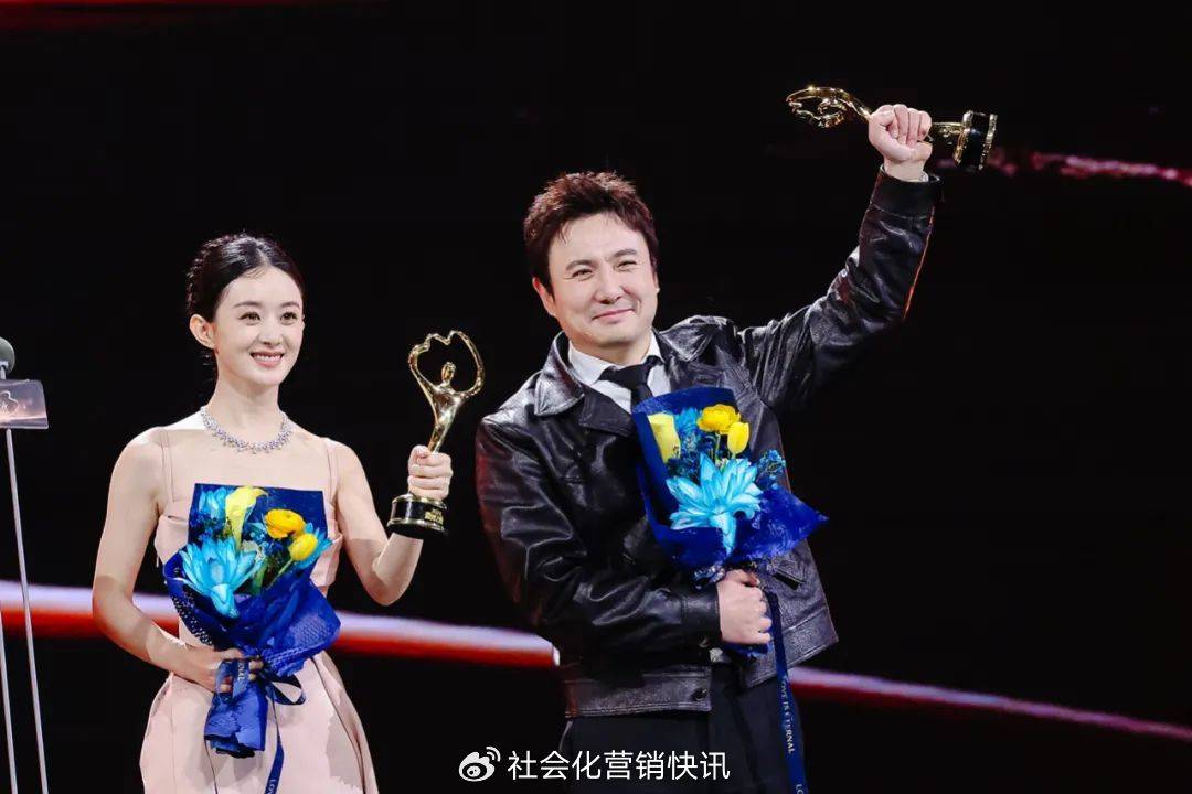 ▲微博QUEEN赵丽颖与微博KING沈腾同台领奖。