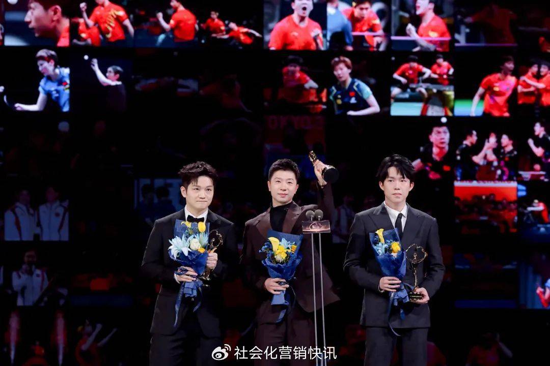 ▲樊振东马龙王楚钦同台领奖,分享他们心中“最难忘的一分”。