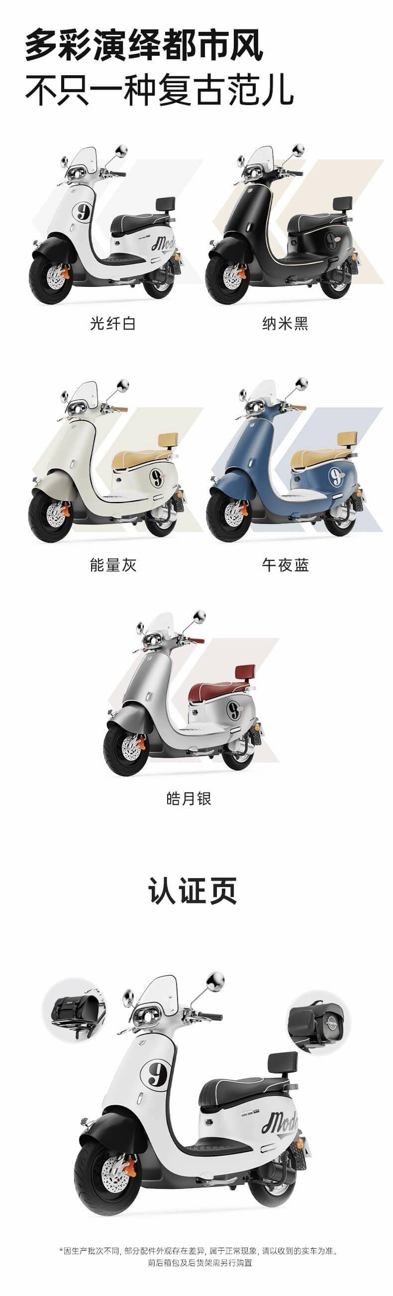 为了满足不同用户的需求,Moda9电动摩托车提供了5款配色供消费者选择。以下是Moda9的详细参数表:
