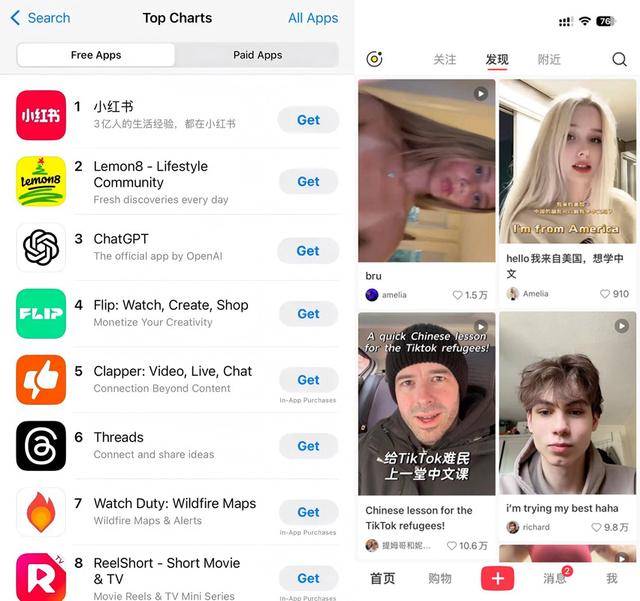近几天,打开我的小红书平台上出现了大量外国用户,首先中国网友都是很惊讶,第一时间都在微信上热议吃瓜。这一现象的背后,主要是由于美国政府对TikTok的禁令即将生效,导致许多用户寻求替代平台。自1月13日以来,小红书迅速登顶美国App Store的下载榜,成为许多TikTok用户的新聚集地。