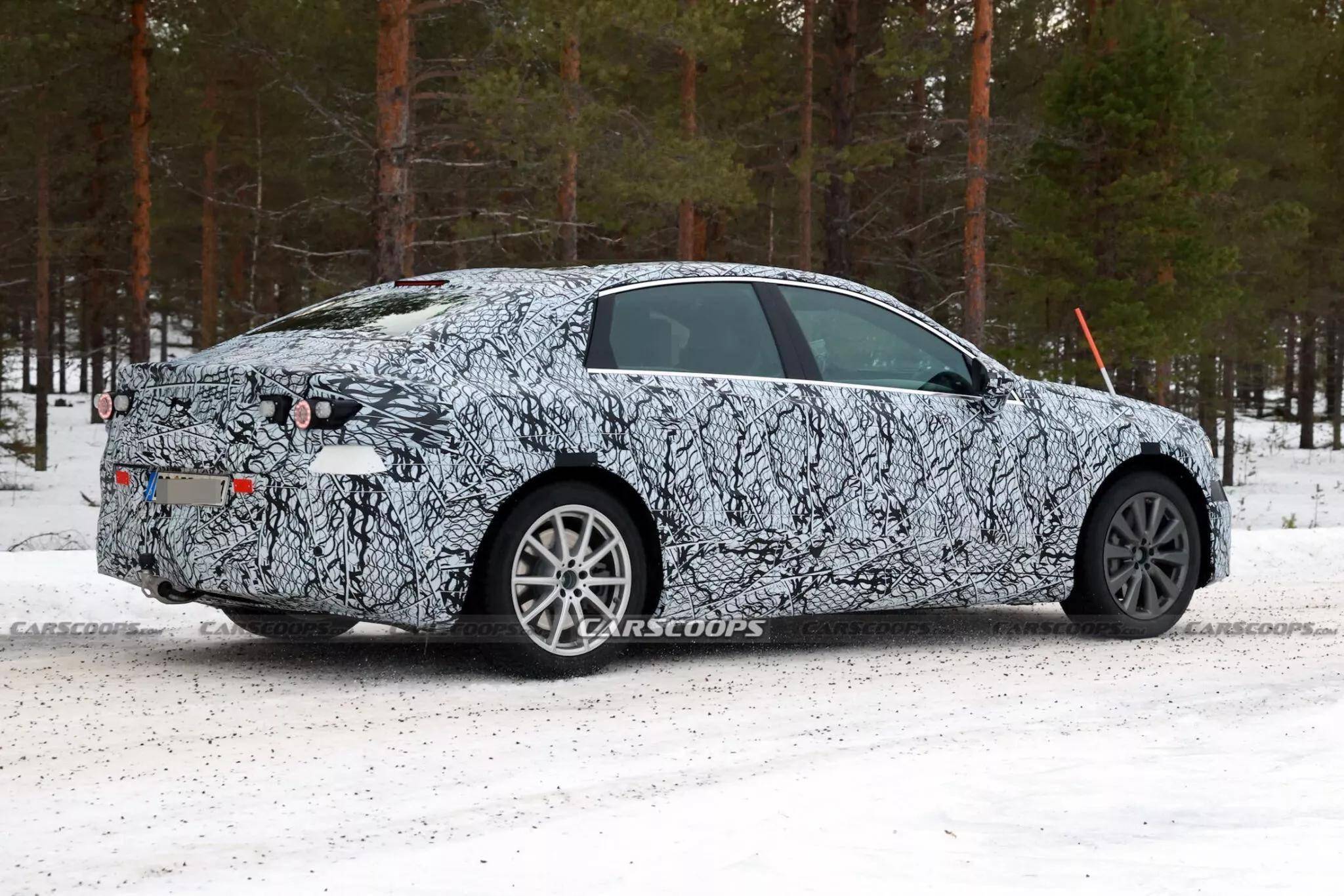 如今,奔驰正将这一设计理念应用到即将推出的电动C级车上。虽然新车仍被大量伪装和占位灯所覆盖,但从谍照中可以窥见一些细节。新车尾部的设计表明它可能采用掀背式配置,但后备箱的闭合线却呈现出三厢轿车的特点。