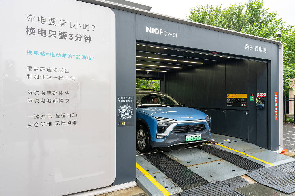 2024年9月7日,北京,蔚来汽车换电站。电动汽车更换电池。