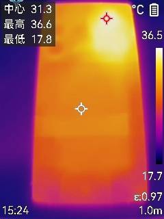 温度方面,机身背面最高温度仅有36.6摄氏度,同比搭载骁龙8 Gen3 for Galaxy的三星S24 Ultra低了4.6摄氏度。