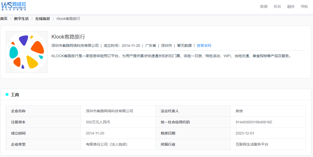 据企业库显示,KLOOK客路旅行是一家旅游体验预订平台,为用户提供景点快速通关和折扣门票、体验一日游、特色活动、WiFi、当地交通、美食购物等产品及服务。