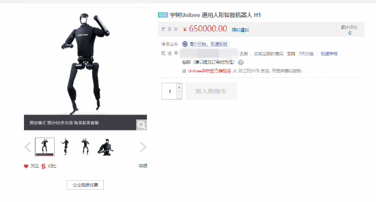 宇树科技最新一代人形机器人Unitree H1和G1已经正式发售,售价高达65万元。然而,目前这两款产品已经从京东平台下架,不再面向个人销售。据悉,这款新产品于2月11日上线,并且配备了3D激光雷达等多种传感器。