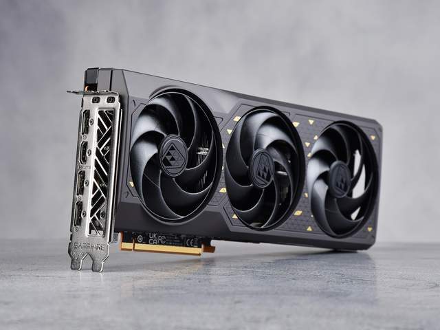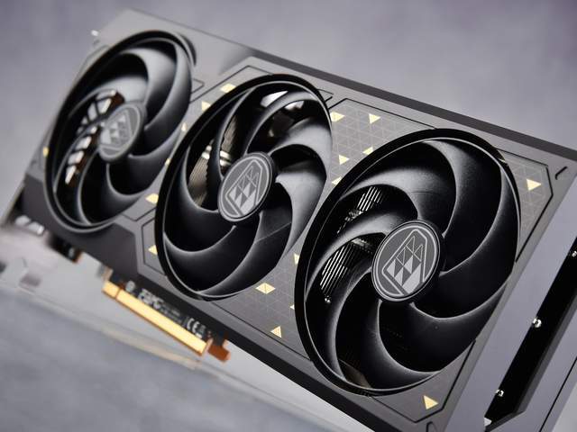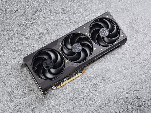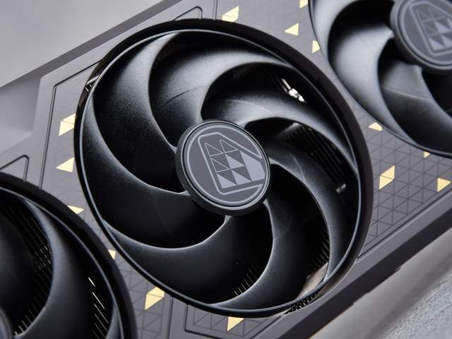 蓝宝石RX 7650 GRE 8G D6黑钻版OC采用3个7叶飞翼轴流风扇,搭配双滚珠轴承结构,可高效散热并延长风扇使用寿命。