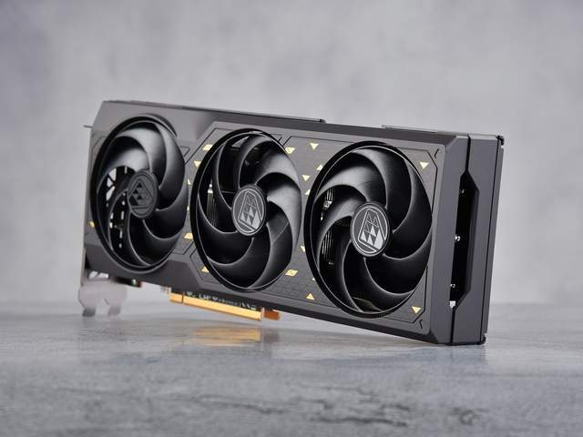 蓝宝石RX 7650 GRE 8G D6黑钻版OC依然以白金版为基底进行改良设计,采用黑色雾面涂层设计,每个区域内均有钻石三角面的暗格,辅以不规则的金色三角作为点缀,整体看起来颇为高级。设计理念中想要强调的“黑钻”元素也都一一得到了彰显。