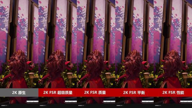 在2K分辨率下,FSR质量档位与原生画质差距较小,平衡模式中角色的头发则会稍显模糊,而FSR性能档位对于2K分辨率并不太适用,会有较大的画质损失。