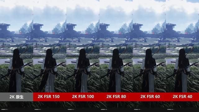 从实际效果来看,在FSR 80时依然有不错的画质还原度;在FSR 60时,角色本身的细节保留较好,但草地有些许锯齿感;而在FSR 40时,则会出现较大的损失。