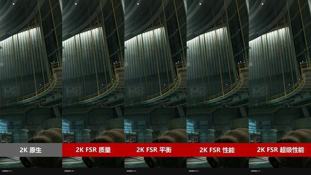 在FSR画质对比中,质量及平衡模式下表现出色,性能模式中远处的字体会稍显模糊,而超级性能几乎完全隐去了远处字体,不推荐适用。