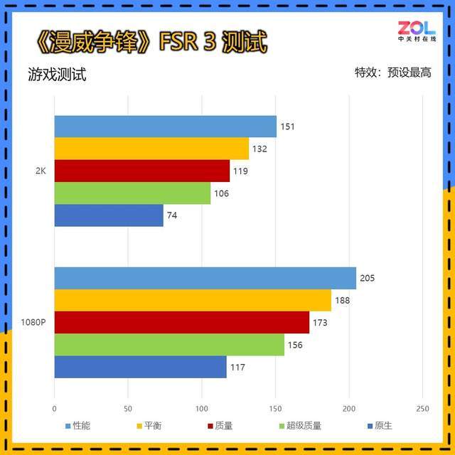 不过从FSR的各项测试来看,如果搭载了FSR 3帧生成,那么2K分辨率下的3A游戏依然不成问题。