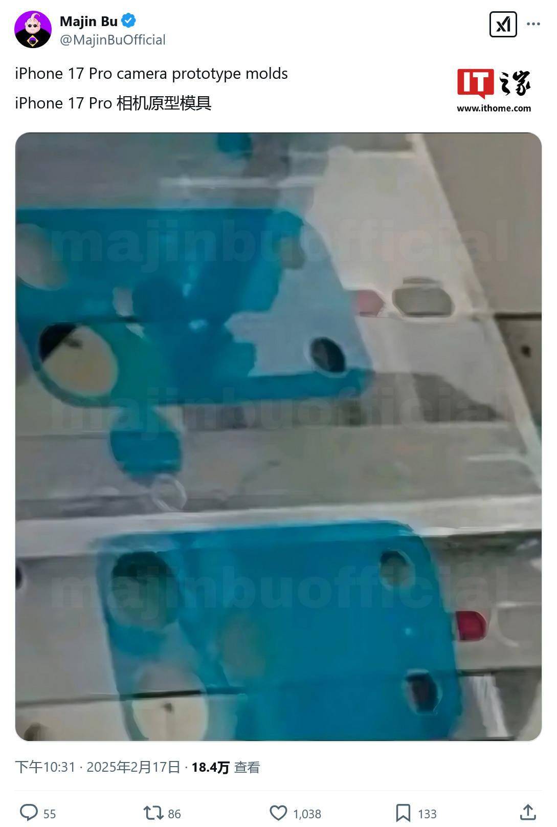 消息源于 2 月 16 日还分享了 iPhone 17 Pro 手机壳渲染图,昨日还分享了 iPhone 17 Pro 相机原型模具,只是画面比较模糊。
