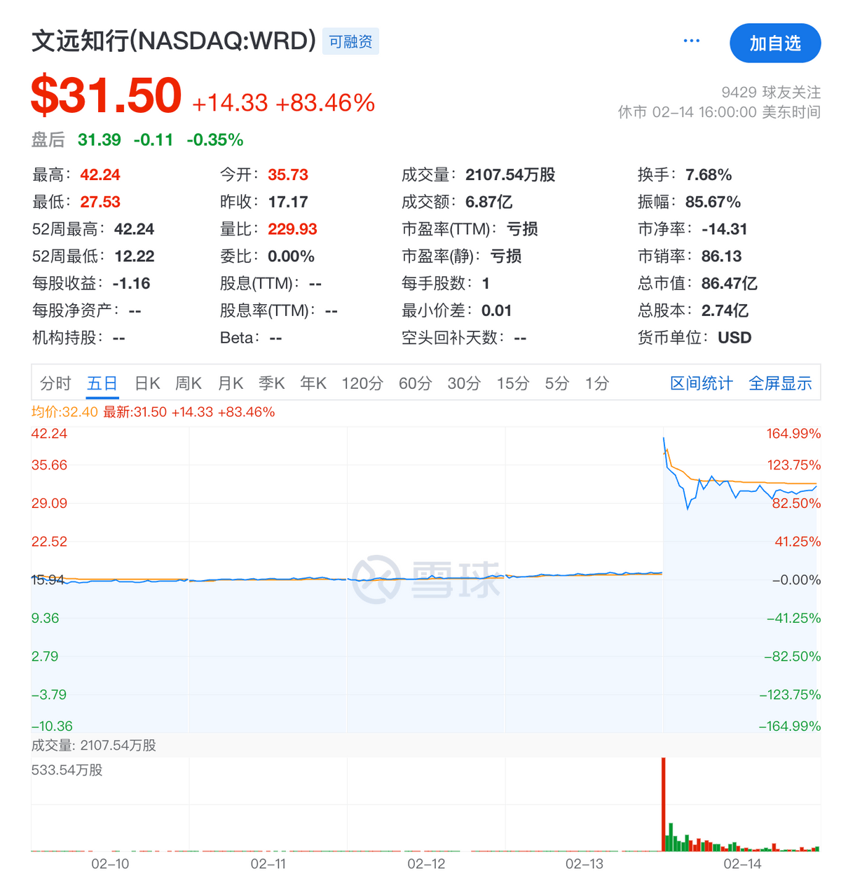 2月14日晚间,广州自动驾驶公司文远知行(WeRide)在美股盘前飙涨超120%,开盘后涨幅一度扩大至140%,触发盘中熔断。