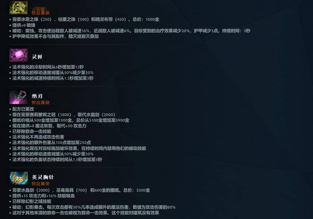 天堂之戟、缚灵索、腐蚀之球、绝刃、英灵胸针等道具重做。
