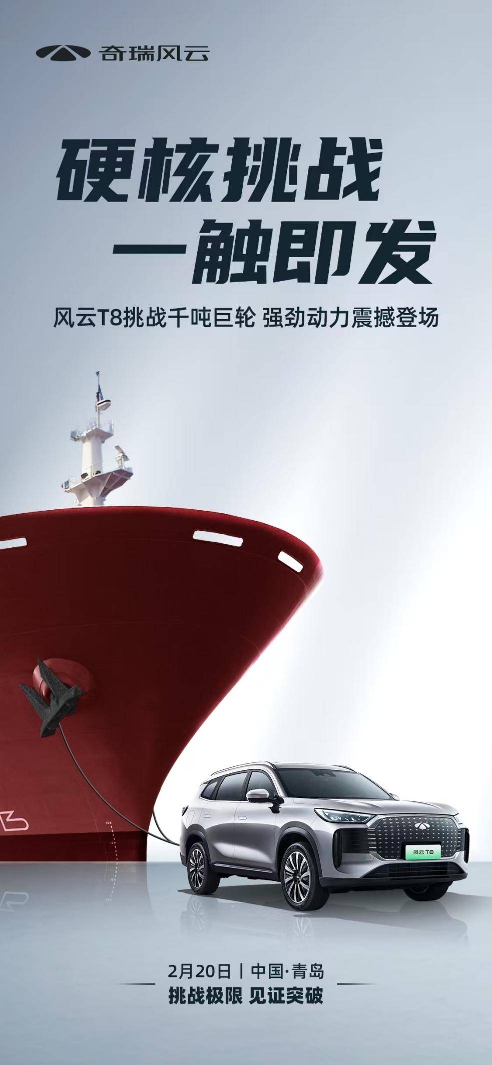 2月19日,奇瑞官方发布汽车拉游轮挑战海报,瞬间引爆热搜!焦点直指即将上市的奇瑞风云T8。看似温和的SUV,竟要挑战拖动千吨游轮?技术咖们坐不住了,纷纷进行物理分析。究竟需要怎样的客观条件,才能让这场看似不可能的挑战成立?让我们一同探讨,见证奇迹的诞生!