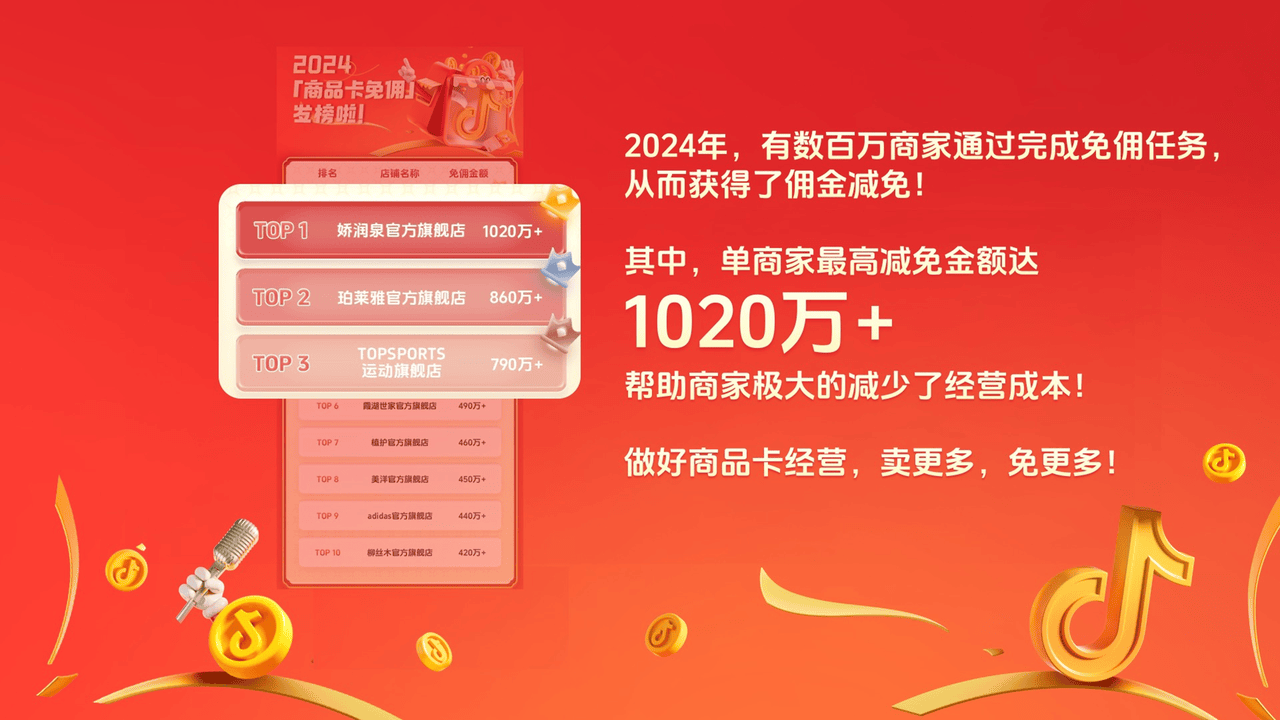 在消费者搜索意愿不断增强的趋势下,商品卡作为承接搜索流量和销售转化的纽带,重要意义愈发凸显。商品卡的特点是低成本、全天24小时在岗。只要商品卡运营得当,商家不必全天上播也能等钱到账。直播期间,抖音电商商家策略运营王肖肖分享了一组数据: 去年,通过商品卡免佣政策,抖音电商为超150万商家累计节省成本超100亿元。以娇润泉官方旗舰店为例,免佣超一千万。今年随着新一轮利好政策集中释放,平台全年补贴金额将高达135亿,给商家带来持续激励和扶持。卖得越多,免得越多!