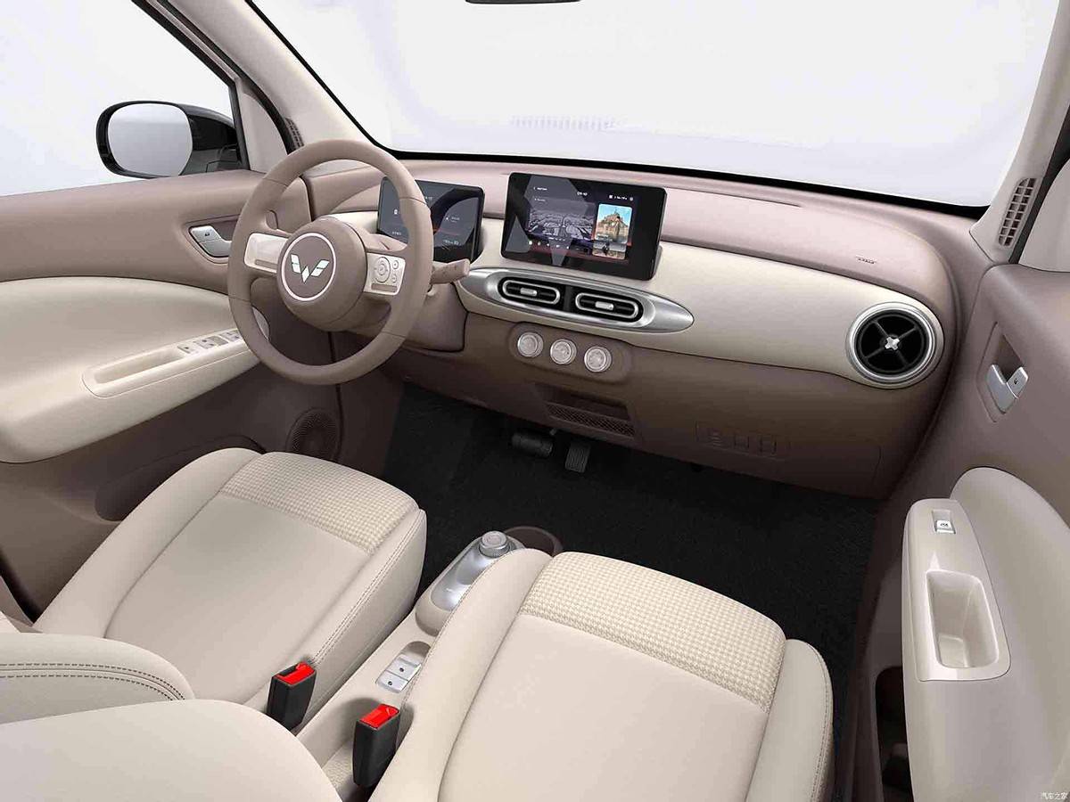 内饰部分,新车的改动不大,仍然采用了简约与可爱风格,只是在细节造型上有所变化。配置上,宏光MINIEV四门版中高配车型配备前排安全气囊、倒车影像、8英寸悬浮中控屏、车载蓝牙、无钥匙进入/启动等实用配置,提升了驾驶使用的便捷性。