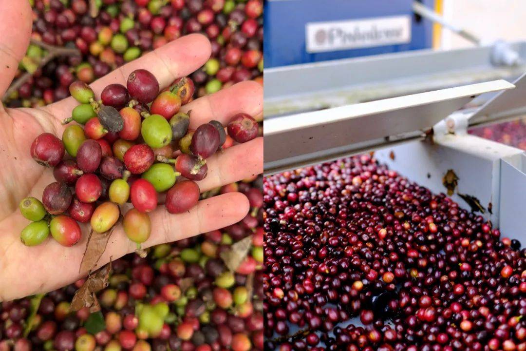 由于自家庄园种的鲜果产量有限,加工周期长,我们需要从市场采购鲜果或带壳豆进行处理。(注:咖啡鲜果需要经过采摘、处理、干燥才能变为带壳豆/干豆,再经过脱壳、筛选后变为生豆,生豆经过烘焙后成为熟豆,才可被使用。)