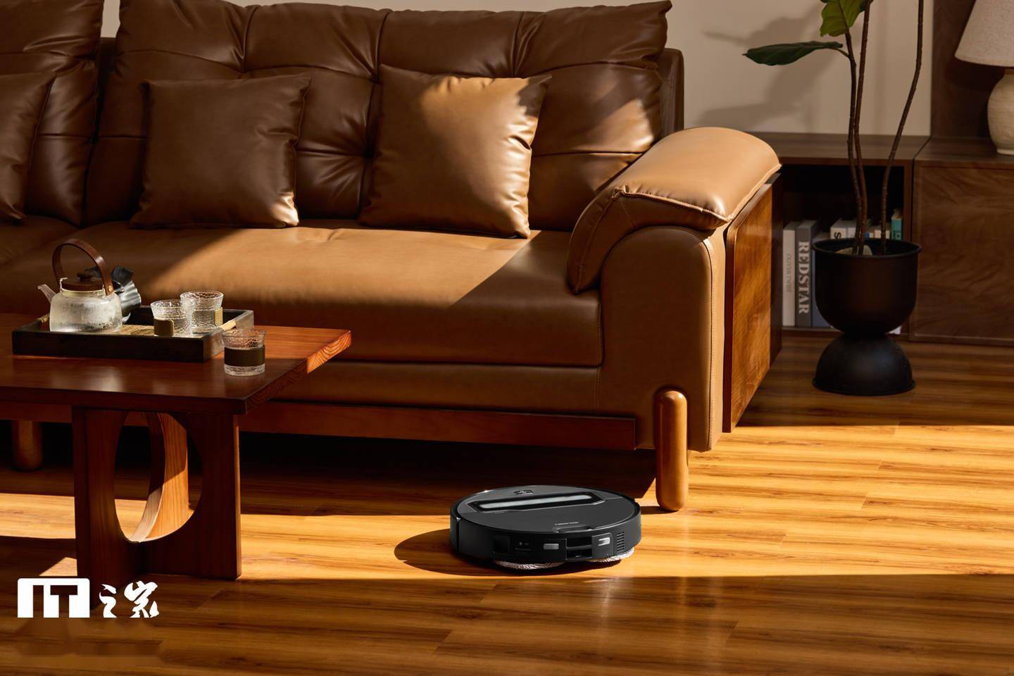 回到机器本身,石头 G30 Space 顶部纯平无凸起,机身厚度仅 7.98cm,确保在低矮环境中也能顺畅通行。