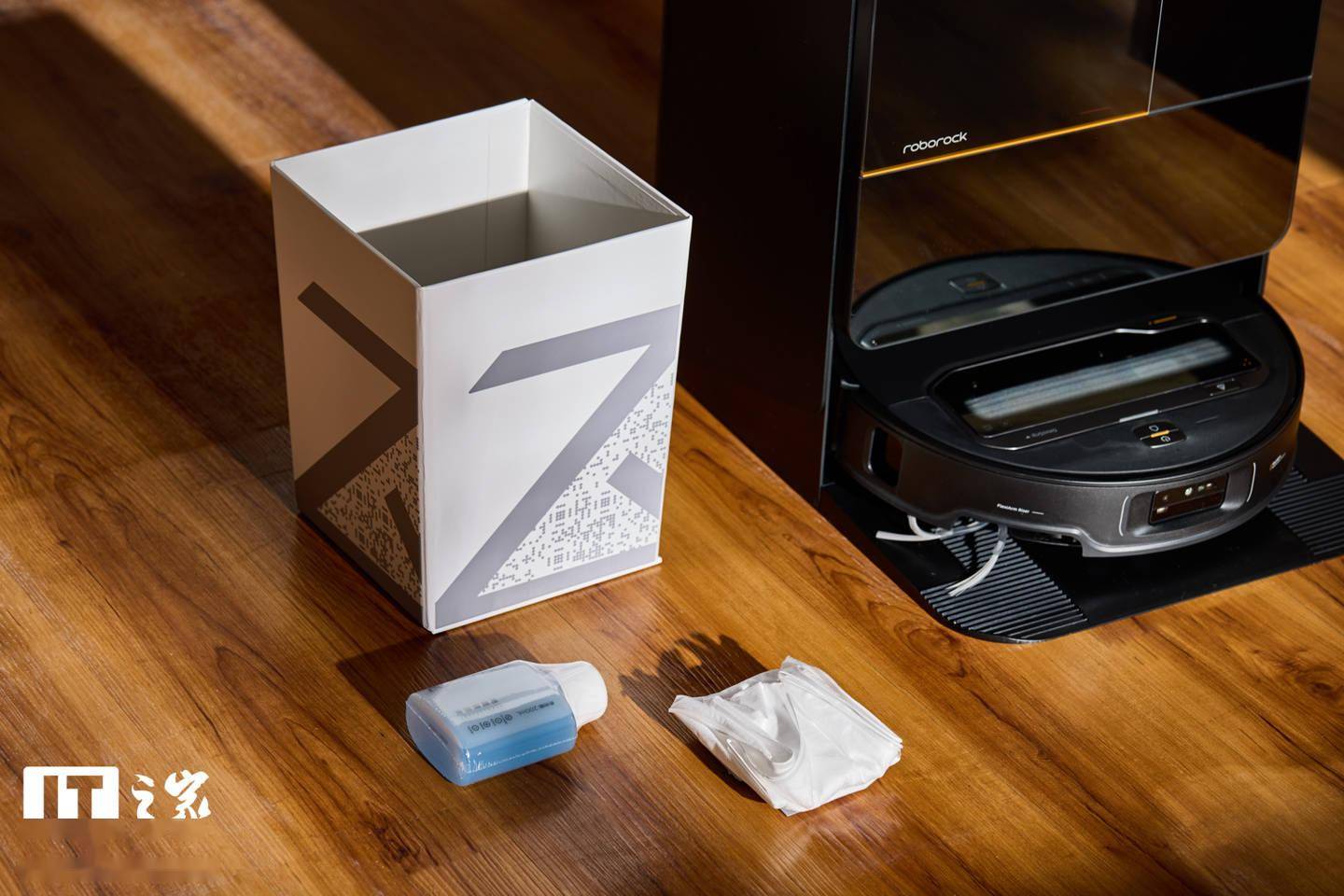 在配件上,除了尘袋和清洁液之外,石头 G30 Space 还额外附送了一个折叠收纳桶。