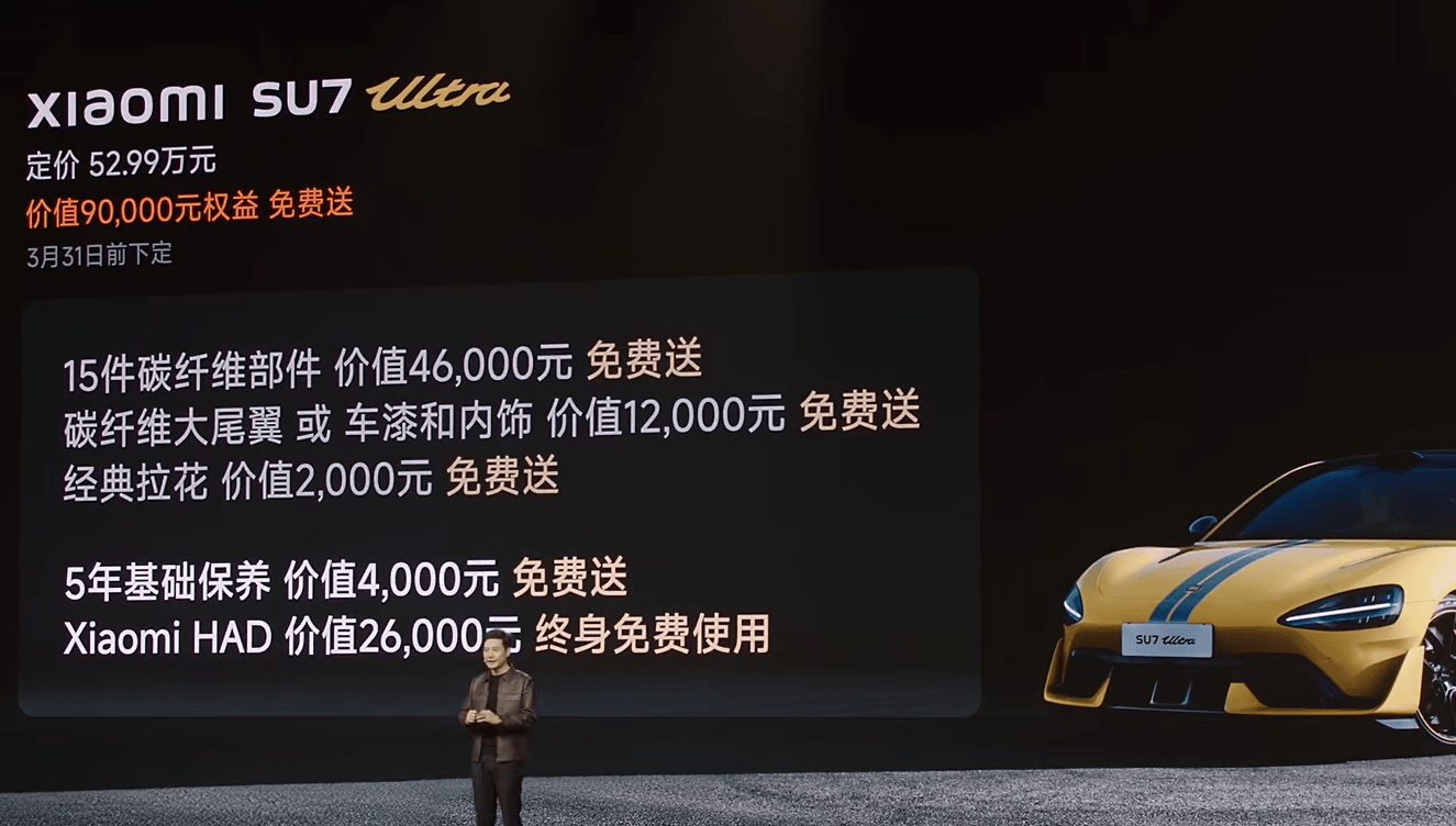 发布会上,雷军说道:“小米SU7 Ultra贵的有道理,但也要让真喜欢的人买得起。”