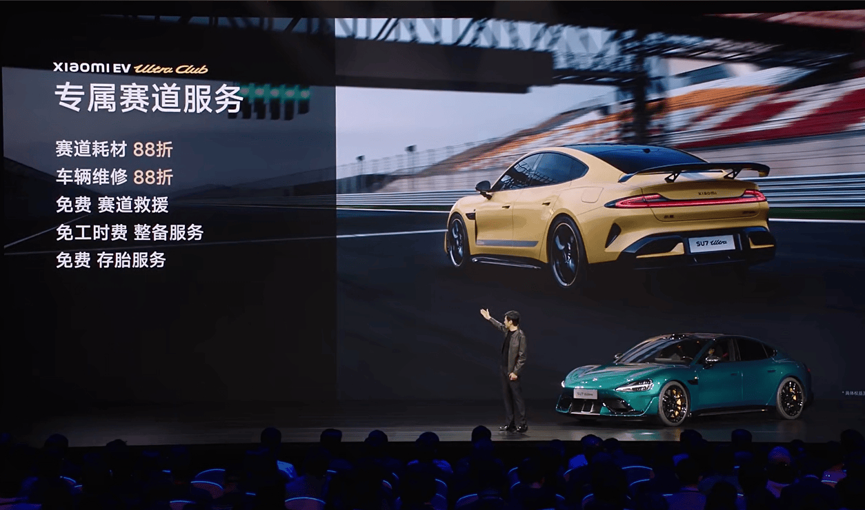 对于定价超过50万的SU7 Ultra标准版来说,虽然相比预售价有了近30万元的降幅,但售价也进入了BBA的"56E"价格区间,营销上颇具挑战,所以这次的小米SU7 Ultra玩起了“赛道营销”。