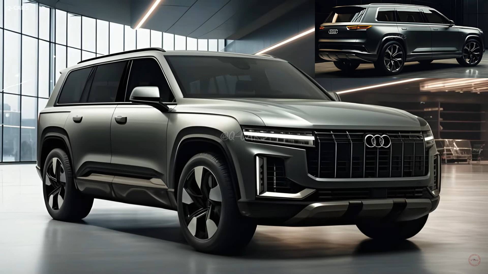 不管怎么说,还是非常期待这台奥迪的旗舰SUV尽快上市,下面有些渲染图,感觉还挺有意思的,可能不一定准确,不过可以欣赏一下。个人挺喜欢那个硬派一些的设计。