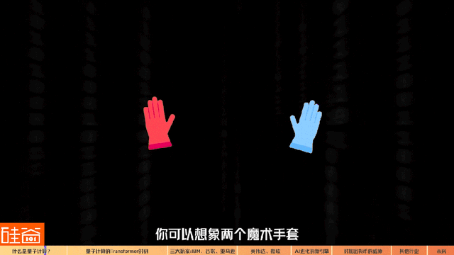 假设有两只被分开放置的魔术手套,彼此会影响颜色,而一旦左手手套被戴上后会随机变成红色或蓝色,此时远处的右手手套则立即变成相反的颜色,这种相关性不受距离影响。