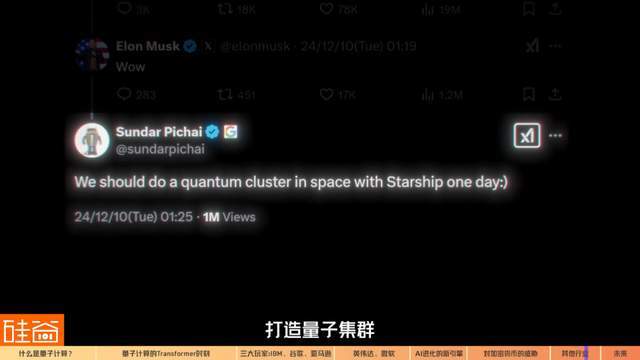 所以量子计算可能会真的加速人类的太空梦,也难怪Sundar Pichai回复马斯克的推文时,还开玩笑地提到,要用星舰在太空中打造量子集群。