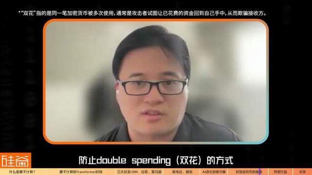 其实还有一批人在研究,怎么借助量子计算来超越区块链。比如,因为量子态很容易被摧毁,可能读取一次就被摧毁了,那么可以通过这种方式去创建一次性交易。现在防止双花(double spending)的方式是把交易放到链上,然后穿透,通过全球共识来防止双花。(双花:同一笔加密货币被多次使用,通常是攻击者试图让已花费的资金回到自己手中,从而欺骗接收方。)