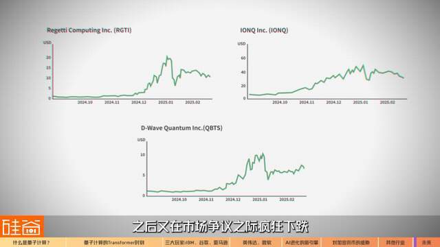 比如最近行情过山车的量子计算概念股。Rigetti、D-Wave Quantum、IonQ这些公司在几个月之内一度翻好几倍,又在市场争议之际疯狂下跌。
