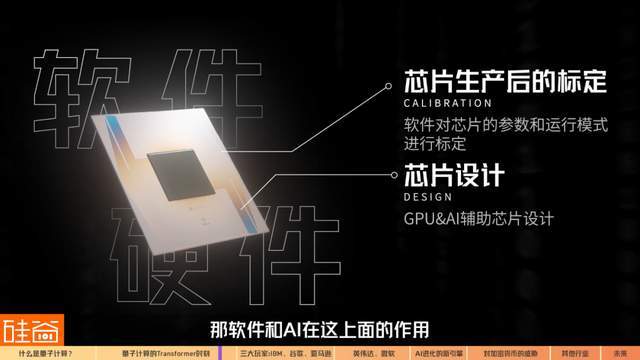 量子相关的软件和硬件是相辅相成的。从最底层的芯片设计来说,软件辅助设计,像英伟达和谷歌今年已经用GPU甚至用AI来加速最底层芯片的仿真和设计优化,这是最底层的软件和量子硬件的结合。再往上一层是,当芯片生产出来后,需要对芯片进行一定的标定。现在CPU的中间层也夹杂着很多偏向机器语言的底层软件层。而软件可以代替人工来对芯片的参数、运行模式进行一定的标定,而且对芯片的工作状态进行一定的优化。软件和AI在这上面的作用其实非常的大。