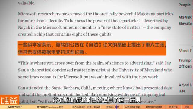 《华尔街日报》引用一位物理学家的质疑称,微软的发布会上,为了佐证这项研究而展示的数据,只是初步数据,并不能确凿证明已经取得了这一进展。