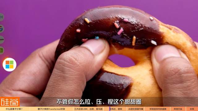 比如甜甜圈,不管怎么拉、压、捏,中间的洞都不会消失,除非把它整体撕开,这就意味着甜甜圈的形状具有“拓扑保护”:不能通过小的变形去改变它的基本特性(洞的数量)。