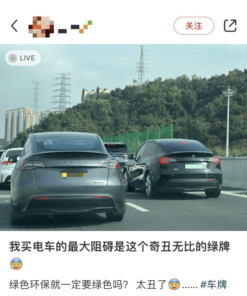 关于新能源汽车的绿牌设计,网上吐槽的声音有很多。