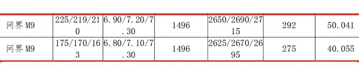 动力方面,新款问界M9增程版车型继续搭载1.5T增程器,不过其最大功率由110kW提升至了118kW,而纯电续航里程则暂未公布。纯电版搭载双电机四驱,前后电机功率分别为160/230kW,预计纯电续航里程可能继续维持在630km(CLTC工况)的水准。