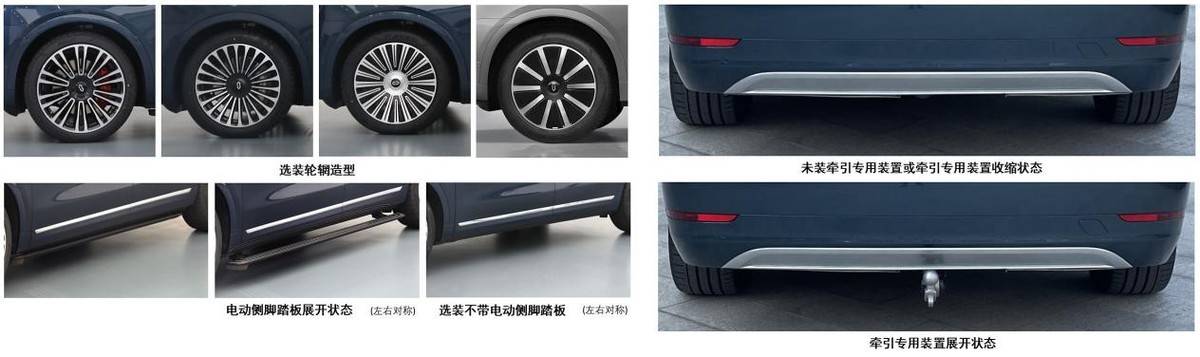 尺寸上,新款问界M9的长宽高依旧分别为5230/1999/1800mm,轴距为3110mm,定位是一台大型SUV。此外,新款车型还新增了一款新的轮圈(下方图3),以更好地迎合不同用户的审美喜好。