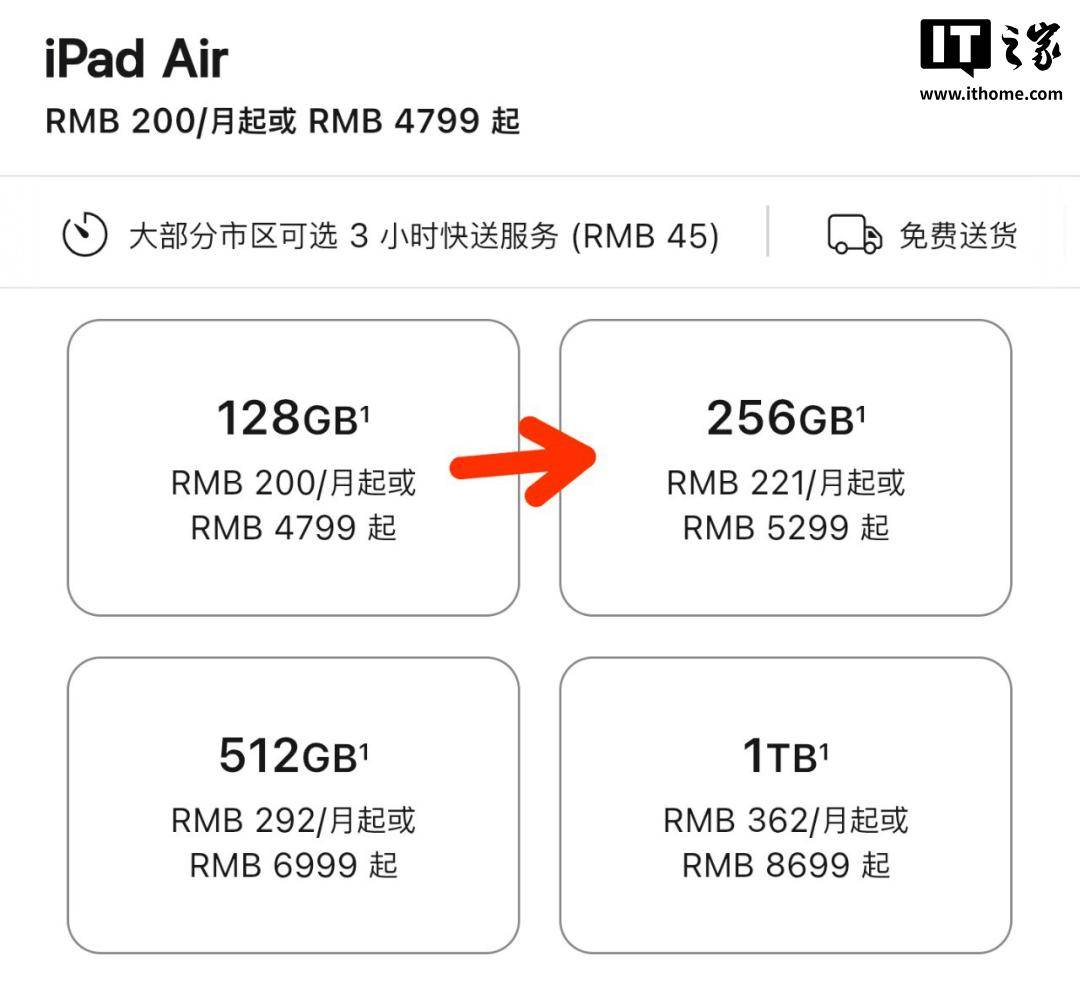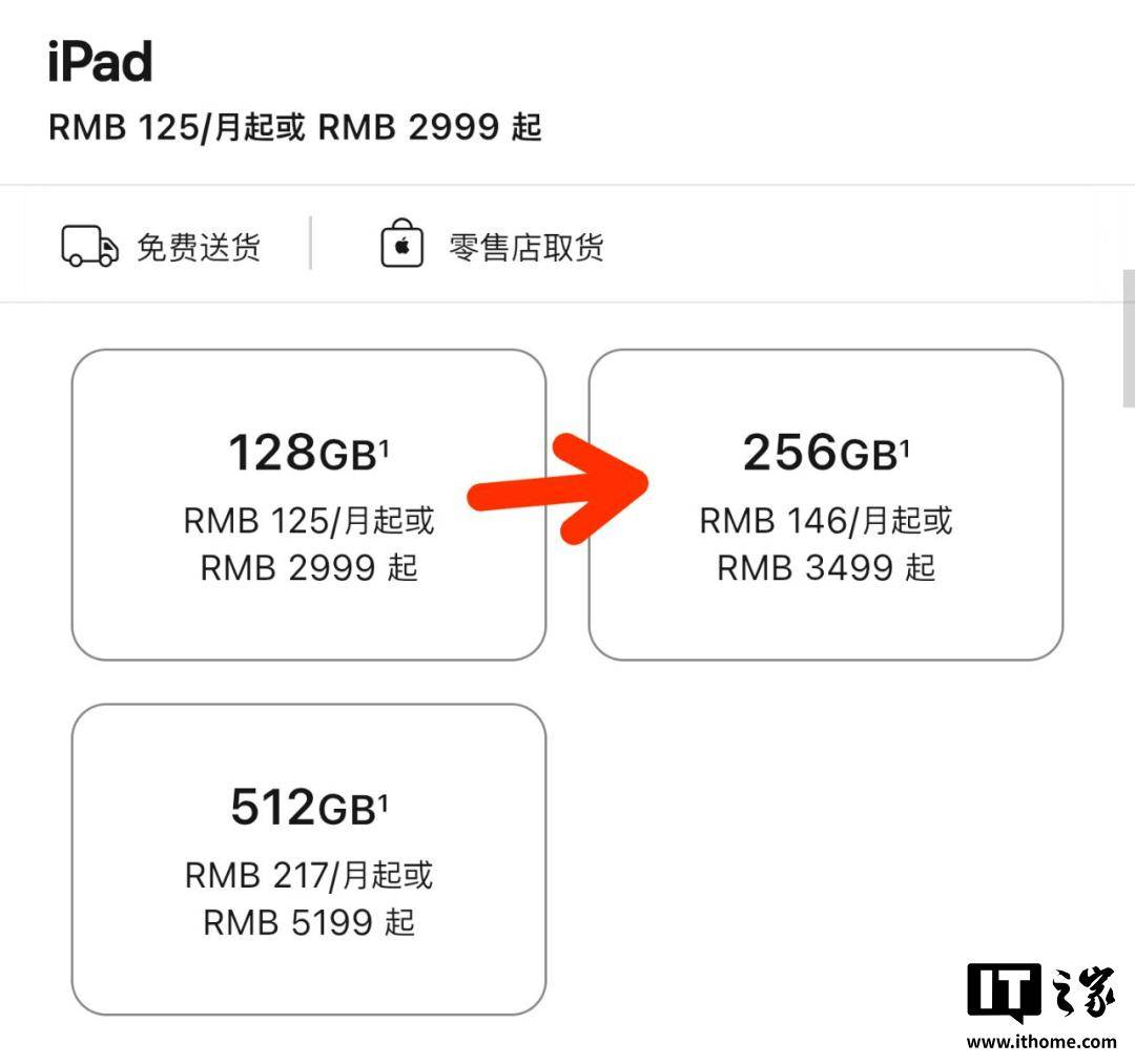 ▲ 128GB 升级 256GB 的差价从 800 元降到了 500 元