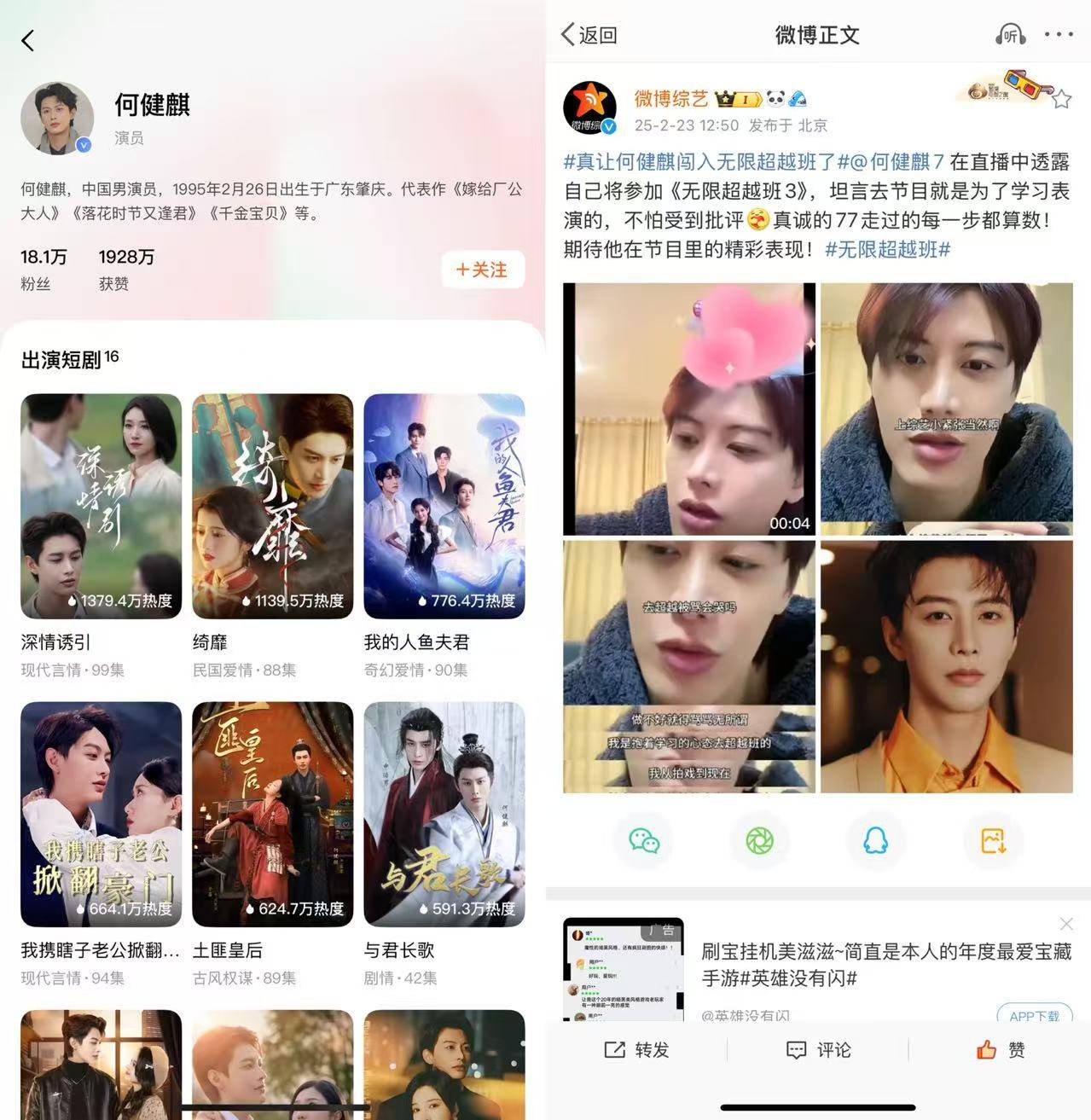 风口浪尖上的何健麒曾出演《绮靡》《繁花如梦》《深情诱引》等热门短剧,在抖音微博等平台上累计有超过200万的粉丝,是名副其实的圈内顶流,与柯淳、马小宇、申浩男/曾辉等人并称“短剧F4”。日前有自称是何健麒“榜一大姐”的网友发文爆料,指控其在二人恋爱期间欺骗感情,并晒出近15万元的直播打赏记录以及照片作为证据。截至发稿,何健麒本人及其工作室均未回应。