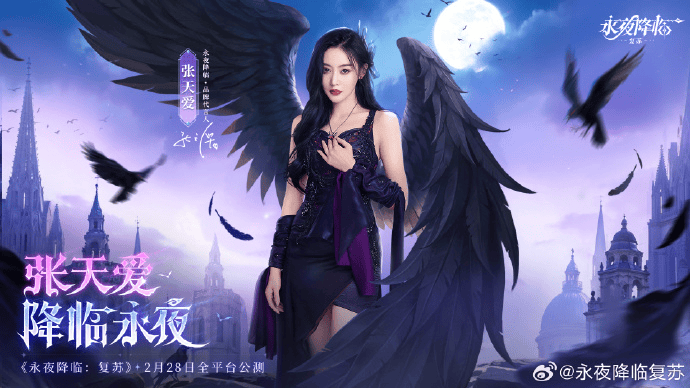 在上线前一周,便公开张天爱担任代言人,结合“暗夜女王”人设与游戏世界观契合,并通过抽奖活动(iPhone、茅台等实物)提升游戏话题度。