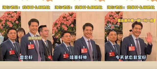 原来,当记者们呼喊“雷总好”“ 哇塞好帅”“状态真好”时,旁边的海尔老总露出了礼貌中带着一丝期待又略显尴尬的微笑。