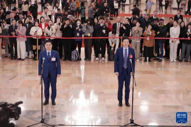 雷军(右)与周云杰(左)亮相“代表通道”(图源:新华社)